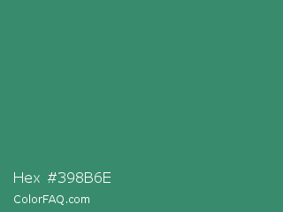 Hex #398b6e Color is a normal green color and the nearest color is Viridian #40826d. Hex code #398b6e and RGB value is rgb(57,139,110). In RGB color space, this color is composed of 22% red, 55% green, 43% blue, In CMYK color space, this color is composed of 59% cyan, 0% magenta, 21% yellow , 45% black , In HSL color space, this color has a hue angle of 159° , 42% saturation and 38% lightness.