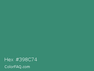 Hex #398c74 Color is a normal green color and the nearest color is Illuminating Emerald #319177. Hex code #398c74 and RGB value is rgb(57,140,116). In RGB color space, this color is composed of 22% red, 55% green, 45% blue, In CMYK color space, this color is composed of 59% cyan, 0% magenta, 17% yellow , 45% black , In HSL color space, this color has a hue angle of 163° , 42% saturation and 39% lightness.