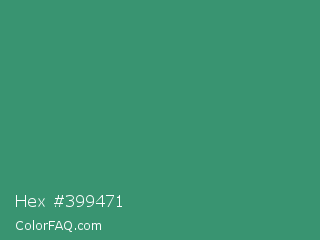 Hex #399471 Color is a normal green color and the nearest color is Illuminating Emerald #319177. Hex code #399471 and RGB value is rgb(57,148,113). In RGB color space, this color is composed of 22% red, 58% green, 44% blue, In CMYK color space, this color is composed of 61% cyan, 0% magenta, 24% yellow , 42% black , In HSL color space, this color has a hue angle of 157° , 44% saturation and 40% lightness.