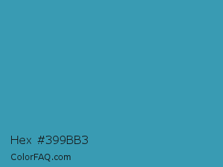 Hex #399bb3 Color is a normal cyan color and the nearest color is Boston Blue #3b91b4. Hex code #399bb3 and RGB value is rgb(57,155,179). In RGB color space, this color is composed of 22% red, 61% green, 70% blue, In CMYK color space, this color is composed of 68% cyan, 13% magenta, 0% yellow , 30% black , In HSL color space, this color has a hue angle of 192° , 52% saturation and 46% lightness.