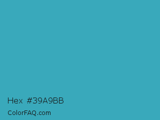 Hex #39a9bb Color is a normal cyan color and the nearest color is Pelorous #3eabbf. Hex code #39a9bb and RGB value is rgb(57,169,187). In RGB color space, this color is composed of 22% red, 66% green, 73% blue, In CMYK color space, this color is composed of 70% cyan, 10% magenta, 0% yellow , 27% black , In HSL color space, this color has a hue angle of 188° , 53% saturation and 48% lightness.