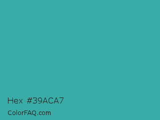 Hex #39aca7 Color is a normal cyan color and the nearest color is Keppel #3ab09e. Hex code #39aca7 and RGB value is rgb(57,172,167). In RGB color space, this color is composed of 22% red, 67% green, 65% blue, In CMYK color space, this color is composed of 67% cyan, 0% magenta, 3% yellow , 33% black , In HSL color space, this color has a hue angle of 177° , 50% saturation and 45% lightness.