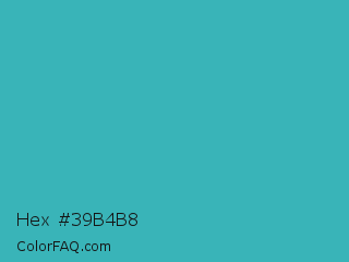 Hex #39b4b8 Color is a normal cyan color and the nearest color is Pelorous #3eabbf. Hex code #39b4b8 and RGB value is rgb(57,180,184). In RGB color space, this color is composed of 22% red, 71% green, 72% blue, In CMYK color space, this color is composed of 69% cyan, 2% magenta, 0% yellow , 28% black , In HSL color space, this color has a hue angle of 182° , 53% saturation and 47% lightness.
