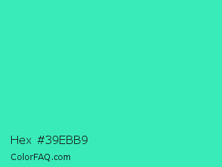 Hex #39ebb9 Color is a normal green color and the nearest color is Turquoise #40e0d0. Hex code #39ebb9 and RGB value is rgb(57,235,185). In RGB color space, this color is composed of 22% red, 92% green, 73% blue, In CMYK color space, this color is composed of 76% cyan, 0% magenta, 21% yellow , 8% black , In HSL color space, this color has a hue angle of 163° , 82% saturation and 57% lightness.