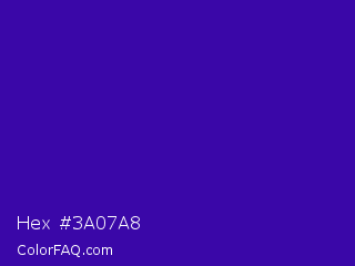 Hex #3a07a8 Color is a normal indigo color and the nearest color is Blue Gem #2c0e8c. Hex code #3a07a8 and RGB value is rgb(58,7,168). In RGB color space, this color is composed of 23% red, 3% green, 66% blue, In CMYK color space, this color is composed of 65% cyan, 96% magenta, 0% yellow , 34% black , In HSL color space, this color has a hue angle of 259° , 92% saturation and 34% lightness.