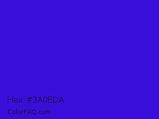 Hex #3a0eda Color is a normal indigo color and the nearest color is Interdimensional Blue #360ccc. Hex code #3a0eda and RGB value is rgb(58,14,218). In RGB color space, this color is composed of 23% red, 5% green, 85% blue, In CMYK color space, this color is composed of 73% cyan, 94% magenta, 0% yellow , 15% black , In HSL color space, this color has a hue angle of 253° , 88% saturation and 45% lightness.
