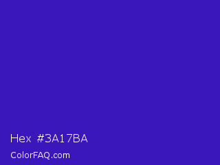 Hex #3a17ba Color is a normal indigo color and the nearest color is Interdimensional Blue #360ccc. Hex code #3a17ba and RGB value is rgb(58,23,186). In RGB color space, this color is composed of 23% red, 9% green, 73% blue, In CMYK color space, this color is composed of 69% cyan, 88% magenta, 0% yellow , 27% black , In HSL color space, this color has a hue angle of 253° , 78% saturation and 41% lightness.