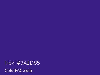 Hex #3a1d85 Color is a normal indigo color and the nearest color is Pixie Powder #391285. Hex code #3a1d85 and RGB value is rgb(58,29,133). In RGB color space, this color is composed of 23% red, 11% green, 52% blue, In CMYK color space, this color is composed of 56% cyan, 78% magenta, 0% yellow , 48% black , In HSL color space, this color has a hue angle of 257° , 64% saturation and 32% lightness.