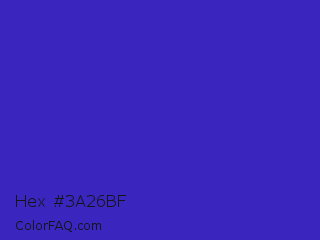 Hex #3a26bf Color is a normal indigo color and the nearest color is Governor Bay #2f3cb3. Hex code #3a26bf and RGB value is rgb(58,38,191). In RGB color space, this color is composed of 23% red, 15% green, 75% blue, In CMYK color space, this color is composed of 70% cyan, 80% magenta, 0% yellow , 25% black , In HSL color space, this color has a hue angle of 248° , 67% saturation and 45% lightness.