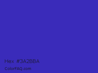 Hex #3a2bba Color is a normal indigo color and the nearest color is Governor Bay #2f3cb3. Hex code #3a2bba and RGB value is rgb(58,43,186). In RGB color space, this color is composed of 23% red, 17% green, 73% blue, In CMYK color space, this color is composed of 69% cyan, 77% magenta, 0% yellow , 27% black , In HSL color space, this color has a hue angle of 246° , 62% saturation and 45% lightness.