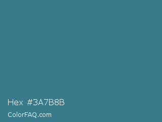 Hex #3a7b8b Color is a normal cyan color and the nearest color is Teal Blue #367588. Hex code #3a7b8b and RGB value is rgb(58,123,139). In RGB color space, this color is composed of 23% red, 48% green, 55% blue, In CMYK color space, this color is composed of 58% cyan, 12% magenta, 0% yellow , 45% black , In HSL color space, this color has a hue angle of 192° , 41% saturation and 39% lightness.