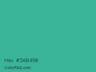 Hex #3ab498 Color is a normal cyan color and the nearest color is Keppel #3ab09e. Hex code #3ab498 and RGB value is rgb(58,180,152). In RGB color space, this color is composed of 23% red, 71% green, 60% blue, In CMYK color space, this color is composed of 68% cyan, 0% magenta, 16% yellow , 29% black , In HSL color space, this color has a hue angle of 166° , 51% saturation and 47% lightness.