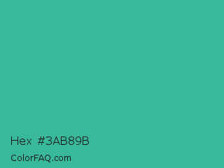 Hex #3ab89b Color is a normal cyan color and the nearest color is Keppel #3ab09e. Hex code #3ab89b and RGB value is rgb(58,184,155). In RGB color space, this color is composed of 23% red, 72% green, 61% blue, In CMYK color space, this color is composed of 68% cyan, 0% magenta, 16% yellow , 28% black , In HSL color space, this color has a hue angle of 166° , 52% saturation and 47% lightness.