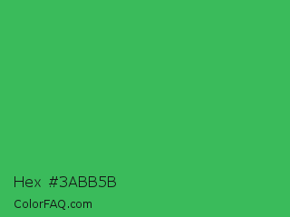 Hex #3abb5b Color is a normal green color and the nearest color is Chateau Green #40a860. Hex code #3abb5b and RGB value is rgb(58,187,91). In RGB color space, this color is composed of 23% red, 73% green, 36% blue, In CMYK color space, this color is composed of 69% cyan, 0% magenta, 51% yellow , 27% black , In HSL color space, this color has a hue angle of 135° , 53% saturation and 48% lightness.