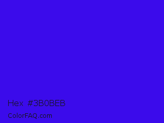 Hex #3b0beb Color is a normal indigo color and the nearest color is Electric Ultramarine #3f00ff. Hex code #3b0beb and RGB value is rgb(59,11,235). In RGB color space, this color is composed of 23% red, 4% green, 92% blue, In CMYK color space, this color is composed of 75% cyan, 95% magenta, 0% yellow , 8% black , In HSL color space, this color has a hue angle of 253° , 91% saturation and 48% lightness.