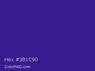 Hex #3b1c90 Color is a normal indigo color and the nearest color is Pixie Powder #391285. Hex code #3b1c90 and RGB value is rgb(59,28,144). In RGB color space, this color is composed of 23% red, 11% green, 56% blue, In CMYK color space, this color is composed of 59% cyan, 81% magenta, 0% yellow , 44% black , In HSL color space, this color has a hue angle of 256° , 67% saturation and 34% lightness.