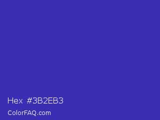 Hex #3b2eb3 Color is a normal indigo color and the nearest color is Governor Bay #2f3cb3. Hex code #3b2eb3 and RGB value is rgb(59,46,179). In RGB color space, this color is composed of 23% red, 18% green, 70% blue, In CMYK color space, this color is composed of 67% cyan, 74% magenta, 0% yellow , 30% black , In HSL color space, this color has a hue angle of 246° , 59% saturation and 44% lightness.