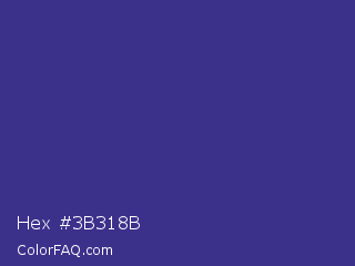 Hex #3b318b Color is a normal indigo color and the nearest color is Minsk #3f307f. Hex code #3b318b and RGB value is rgb(59,49,139). In RGB color space, this color is composed of 23% red, 19% green, 55% blue, In CMYK color space, this color is composed of 58% cyan, 65% magenta, 0% yellow , 45% black , In HSL color space, this color has a hue angle of 247° , 48% saturation and 37% lightness.