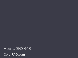 Hex #3b3b48 Color is a dark blue color and the nearest color is Ship Gray #3e3a44. Hex code #3b3b48 and RGB value is rgb(59,59,72). In RGB color space, this color is composed of 23% red, 23% green, 28% blue, In CMYK color space, this color is composed of 18% cyan, 18% magenta, 0% yellow , 72% black , In HSL color space, this color has a hue angle of 240° , 10% saturation and 26% lightness.