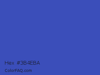 Hex #3b4eba Color is a normal blue color and the nearest color is Violet Blue #324ab2. Hex code #3b4eba and RGB value is rgb(59,78,186). In RGB color space, this color is composed of 23% red, 31% green, 73% blue, In CMYK color space, this color is composed of 68% cyan, 58% magenta, 0% yellow , 27% black , In HSL color space, this color has a hue angle of 231° , 52% saturation and 48% lightness.