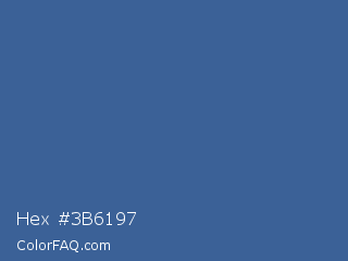 Hex #3b6197 Color is a normal blue color and the nearest color is Queen Blue #436b95. Hex code #3b6197 and RGB value is rgb(59,97,151). In RGB color space, this color is composed of 23% red, 38% green, 59% blue, In CMYK color space, this color is composed of 61% cyan, 36% magenta, 0% yellow , 41% black , In HSL color space, this color has a hue angle of 215° , 44% saturation and 41% lightness.