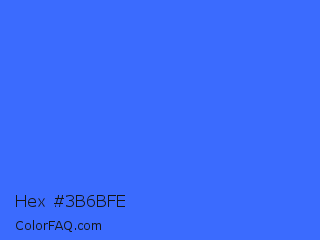 Hex #3b6bfe Color is a light blue color and the nearest color is Ultramarine Blue #4166f5. Hex code #3b6bfe and RGB value is rgb(59,107,254). In RGB color space, this color is composed of 23% red, 42% green, 100% blue, In CMYK color space, this color is composed of 77% cyan, 58% magenta, 0% yellow , 0% black , In HSL color space, this color has a hue angle of 225° , 99% saturation and 61% lightness.