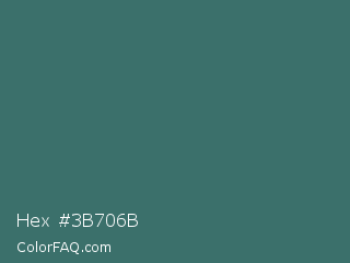 Hex #3b706b Color is a normal cyan color and the nearest color is William #3a686c. Hex code #3b706b and RGB value is rgb(59,112,107). In RGB color space, this color is composed of 23% red, 44% green, 42% blue, In CMYK color space, this color is composed of 47% cyan, 0% magenta, 4% yellow , 56% black , In HSL color space, this color has a hue angle of 174° , 31% saturation and 34% lightness.