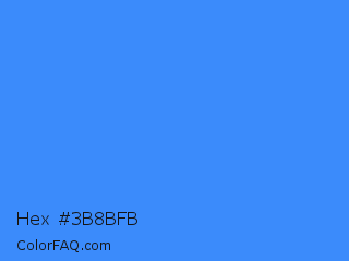 Hex #3b8bfb Color is a light blue color and the nearest color is Brilliant Azure #3399ff. Hex code #3b8bfb and RGB value is rgb(59,139,251). In RGB color space, this color is composed of 23% red, 55% green, 98% blue, In CMYK color space, this color is composed of 76% cyan, 45% magenta, 0% yellow , 2% black , In HSL color space, this color has a hue angle of 215° , 96% saturation and 61% lightness.