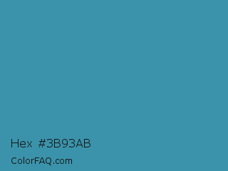 Hex #3b93ab Color is a normal cyan color and the nearest color is Boston Blue #3b91b4. Hex code #3b93ab and RGB value is rgb(59,147,171). In RGB color space, this color is composed of 23% red, 58% green, 67% blue, In CMYK color space, this color is composed of 65% cyan, 14% magenta, 0% yellow , 33% black , In HSL color space, this color has a hue angle of 193° , 49% saturation and 45% lightness.