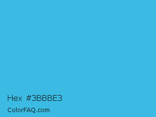 Hex #3bbbe3 Color is a normal blue color and the nearest color is Picton Blue #45b1e8. Hex code #3bbbe3 and RGB value is rgb(59,187,227). In RGB color space, this color is composed of 23% red, 73% green, 89% blue, In CMYK color space, this color is composed of 74% cyan, 18% magenta, 0% yellow , 11% black , In HSL color space, this color has a hue angle of 194° , 75% saturation and 56% lightness.