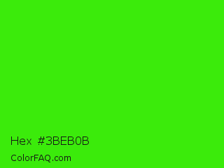 Hex #3beb0b Color is a normal green color and the nearest color is Neon Green #39ff14. Hex code #3beb0b and RGB value is rgb(59,235,11). In RGB color space, this color is composed of 23% red, 92% green, 4% blue, In CMYK color space, this color is composed of 75% cyan, 0% magenta, 95% yellow , 8% black , In HSL color space, this color has a hue angle of 107° , 91% saturation and 48% lightness.
