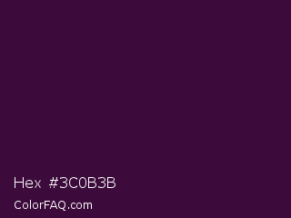 Hex #3c0b3b Color is a very dark magenta color and the nearest color is Valentino #350e42. Hex code #3c0b3b and RGB value is rgb(60,11,59). In RGB color space, this color is composed of 24% red, 4% green, 23% blue, In CMYK color space, this color is composed of 0% cyan, 82% magenta, 2% yellow , 76% black , In HSL color space, this color has a hue angle of 301° , 69% saturation and 14% lightness.