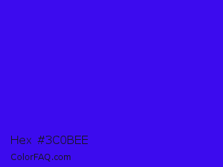 Hex #3c0bee Color is a normal indigo color and the nearest color is Electric Ultramarine #3f00ff. Hex code #3c0bee and RGB value is rgb(60,11,238). In RGB color space, this color is composed of 24% red, 4% green, 93% blue, In CMYK color space, this color is composed of 75% cyan, 95% magenta, 0% yellow , 7% black , In HSL color space, this color has a hue angle of 253° , 91% saturation and 49% lightness.