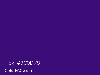 Hex #3c0d78 Color is a dark violet color and the nearest color is Windsor #3c0878. Hex code #3c0d78 and RGB value is rgb(60,13,120). In RGB color space, this color is composed of 24% red, 5% green, 47% blue, In CMYK color space, this color is composed of 50% cyan, 89% magenta, 0% yellow , 53% black , In HSL color space, this color has a hue angle of 266° , 80% saturation and 26% lightness.