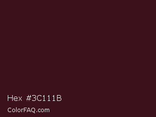 Hex #3c111b Color is a very dark red color and the nearest color is Dark Sienna #3c1414. Hex code #3c111b and RGB value is rgb(60,17,27). In RGB color space, this color is composed of 24% red, 7% green, 11% blue, In CMYK color space, this color is composed of 0% cyan, 72% magenta, 55% yellow , 76% black , In HSL color space, this color has a hue angle of 346° , 56% saturation and 15% lightness.