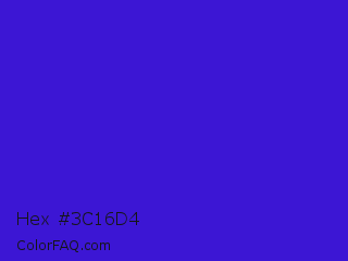 Hex #3c16d4 Color is a normal indigo color and the nearest color is Interdimensional Blue #360ccc. Hex code #3c16d4 and RGB value is rgb(60,22,212). In RGB color space, this color is composed of 24% red, 9% green, 83% blue, In CMYK color space, this color is composed of 72% cyan, 90% magenta, 0% yellow , 17% black , In HSL color space, this color has a hue angle of 252° , 81% saturation and 46% lightness.