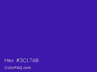 Hex #3c17ab Color is a normal indigo color and the nearest color is Daisy Bush #4f2398. Hex code #3c17ab and RGB value is rgb(60,23,171). In RGB color space, this color is composed of 24% red, 9% green, 67% blue, In CMYK color space, this color is composed of 65% cyan, 87% magenta, 0% yellow , 33% black , In HSL color space, this color has a hue angle of 255° , 76% saturation and 38% lightness.
