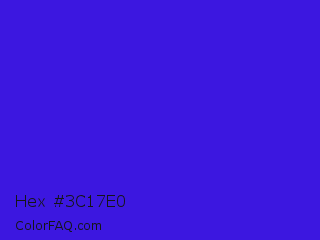 Hex #3c17e0 Color is a normal indigo color and the nearest color is Interdimensional Blue #360ccc. Hex code #3c17e0 and RGB value is rgb(60,23,224). In RGB color space, this color is composed of 24% red, 9% green, 88% blue, In CMYK color space, this color is composed of 73% cyan, 90% magenta, 0% yellow , 12% black , In HSL color space, this color has a hue angle of 251° , 81% saturation and 48% lightness.