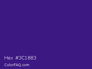 Hex #3c1883 Color is a dark indigo color and the nearest color is Pixie Powder #391285. Hex code #3c1883 and RGB value is rgb(60,24,131). In RGB color space, this color is composed of 24% red, 9% green, 51% blue, In CMYK color space, this color is composed of 54% cyan, 82% magenta, 0% yellow , 49% black , In HSL color space, this color has a hue angle of 260° , 69% saturation and 30% lightness.