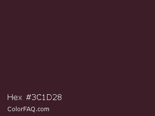Hex #3c1d28 Color is a very dark rose color and the nearest color is Jon #3b1f1f. Hex code #3c1d28 and RGB value is rgb(60,29,40). In RGB color space, this color is composed of 24% red, 11% green, 16% blue, In CMYK color space, this color is composed of 0% cyan, 52% magenta, 33% yellow , 76% black , In HSL color space, this color has a hue angle of 339° , 35% saturation and 17% lightness.