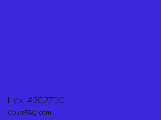 Hex #3c27dc Color is a normal indigo color and the nearest color is Palatinate Blue #273be2. Hex code #3c27dc and RGB value is rgb(60,39,220). In RGB color space, this color is composed of 24% red, 15% green, 86% blue, In CMYK color space, this color is composed of 73% cyan, 82% magenta, 0% yellow , 14% black , In HSL color space, this color has a hue angle of 247° , 72% saturation and 51% lightness.