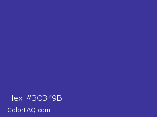 Hex #3c349b Color is a normal indigo color and the nearest color is Blue Pigment #333399. Hex code #3c349b and RGB value is rgb(60,52,155). In RGB color space, this color is composed of 24% red, 20% green, 61% blue, In CMYK color space, this color is composed of 61% cyan, 66% magenta, 0% yellow , 39% black , In HSL color space, this color has a hue angle of 245° , 50% saturation and 41% lightness.