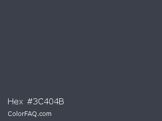 Hex #3c404b Color is a dark blue color and the nearest color is Arsenic #3b444b. Hex code #3c404b and RGB value is rgb(60,64,75). In RGB color space, this color is composed of 24% red, 25% green, 29% blue, In CMYK color space, this color is composed of 20% cyan, 15% magenta, 0% yellow , 71% black , In HSL color space, this color has a hue angle of 224° , 11% saturation and 26% lightness.