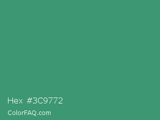 Hex #3c9772 Color is a normal green color and the nearest color is Illuminating Emerald #319177. Hex code #3c9772 and RGB value is rgb(60,151,114). In RGB color space, this color is composed of 24% red, 59% green, 45% blue, In CMYK color space, this color is composed of 60% cyan, 0% magenta, 25% yellow , 41% black , In HSL color space, this color has a hue angle of 156° , 43% saturation and 41% lightness.