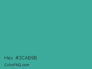 Hex #3cab9b Color is a normal cyan color and the nearest color is Keppel #3ab09e. Hex code #3cab9b and RGB value is rgb(60,171,155). In RGB color space, this color is composed of 24% red, 67% green, 61% blue, In CMYK color space, this color is composed of 65% cyan, 0% magenta, 9% yellow , 33% black , In HSL color space, this color has a hue angle of 171° , 48% saturation and 45% lightness.