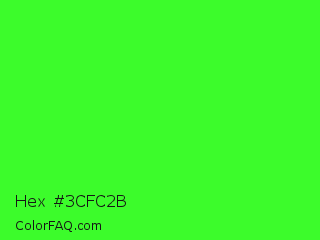 Hex #3cfc2b Color is a normal green color and the nearest color is Neon Green #39ff14. Hex code #3cfc2b and RGB value is rgb(60,252,43). In RGB color space, this color is composed of 24% red, 99% green, 17% blue, In CMYK color space, this color is composed of 76% cyan, 0% magenta, 83% yellow , 1% black , In HSL color space, this color has a hue angle of 115° , 97% saturation and 58% lightness.