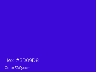 Hex #3d09d8 Color is a normal indigo color and the nearest color is Interdimensional Blue #360ccc. Hex code #3d09d8 and RGB value is rgb(61,9,216). In RGB color space, this color is composed of 24% red, 4% green, 85% blue, In CMYK color space, this color is composed of 72% cyan, 96% magenta, 0% yellow , 15% black , In HSL color space, this color has a hue angle of 255° , 92% saturation and 44% lightness.