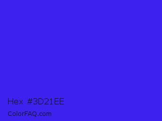Hex #3d21ee Color is a normal indigo color and the nearest color is Han Purple #5218fa. Hex code #3d21ee and RGB value is rgb(61,33,238). In RGB color space, this color is composed of 24% red, 13% green, 93% blue, In CMYK color space, this color is composed of 74% cyan, 86% magenta, 0% yellow , 7% black , In HSL color space, this color has a hue angle of 248° , 86% saturation and 53% lightness.