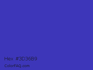 Hex #3d36b9 Color is a normal indigo color and the nearest color is Governor Bay #2f3cb3. Hex code #3d36b9 and RGB value is rgb(61,54,185). In RGB color space, this color is composed of 24% red, 21% green, 73% blue, In CMYK color space, this color is composed of 67% cyan, 71% magenta, 0% yellow , 27% black , In HSL color space, this color has a hue angle of 243° , 55% saturation and 47% lightness.
