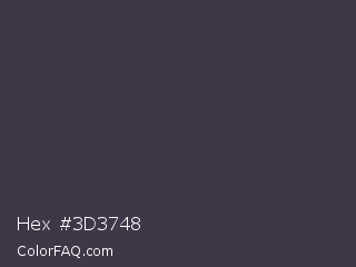 Hex #3d3748 Color is a dark violet color and the nearest color is Ship Gray #3e3a44. Hex code #3d3748 and RGB value is rgb(61,55,72). In RGB color space, this color is composed of 24% red, 22% green, 28% blue, In CMYK color space, this color is composed of 15% cyan, 24% magenta, 0% yellow , 72% black , In HSL color space, this color has a hue angle of 261° , 13% saturation and 25% lightness.